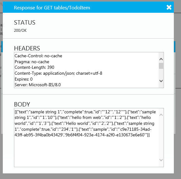 The thing is the mobile framework for Azure table storage is based on having an Id that is of the format “[PartionKey],[RowKey]”. If you don’t have that the real implementation that I copied the code from and modified a bit in the first post, would throw an exception. Unfortunately that doesn’t really work with the custom documentation code that is also part of the mobile framework. So to fix that, I dropped the throwing of exception and just set both PartitionKey and Row key to the value of the Id (when it cannot be parsed as the format “[PartionKey],[RowKey]”).