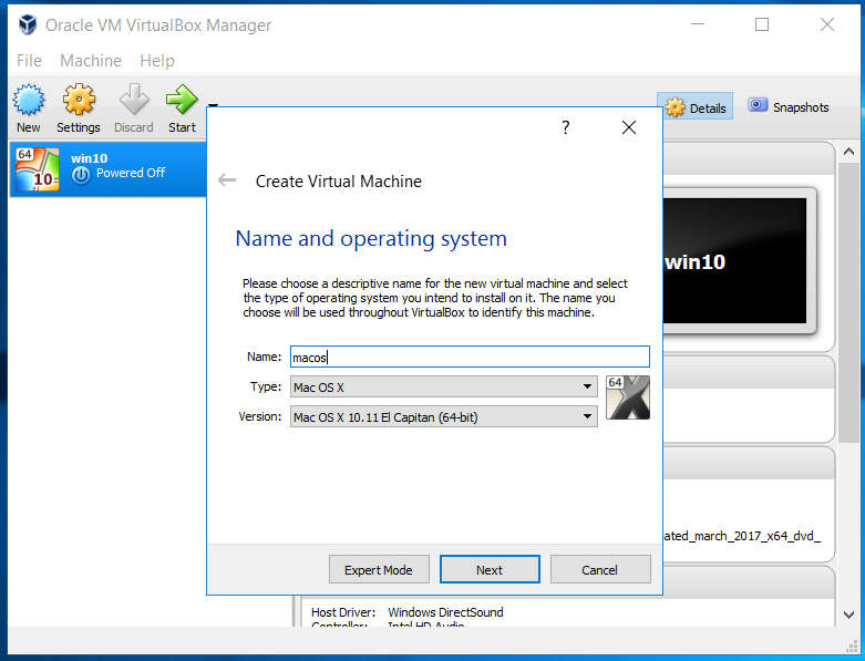 - When you create your new VM from the downloaded image select MacOS as type, and El Captain 64bit as the Version