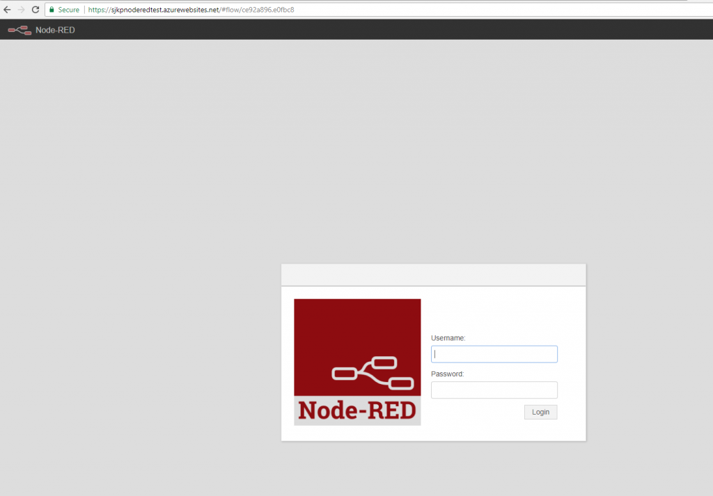 Now you have a password protected node-red instance running on your azure web app. It is accessible over https with is a nice free feature we get from using Azure Web App as the hosting platform.