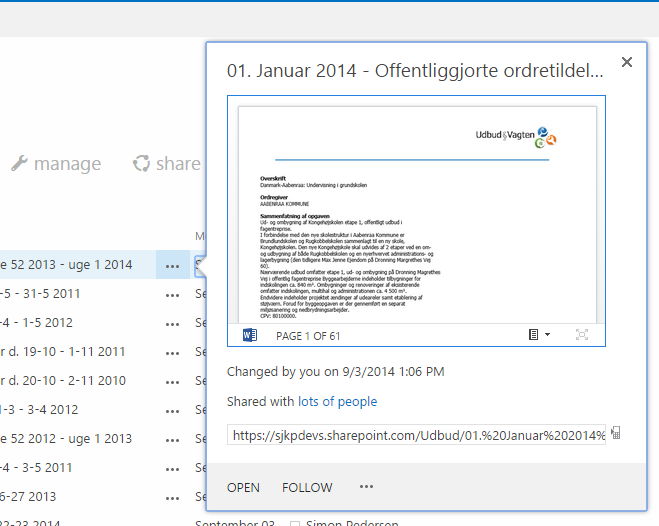 When a user clicks the “…” next to a document, a lot of things goes on if you inspect the requests in something like fiddle, for my investigation two requests are of particular interest.