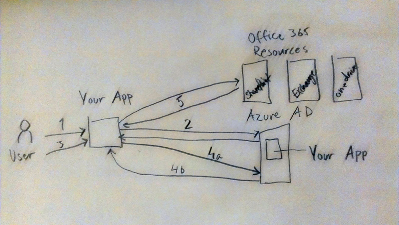 - When authorized, and authcode flows back to the app, this authcode can later be used to retrieve an access token for any of the Office 365 resources